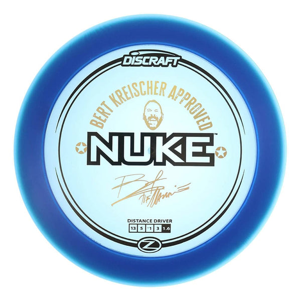 The Nuke is a powerhouse distance driver designed for players who want maximum speed, exceptional glide, and a commanding fade at the end of its flight. It delivers explosive distance when thrown with authority, yet remains predictable enough to shape aggressive lines and handle headwinds. The Z plastic provides a stiff, durable feel with excellent grip and consistent performance through thousands of throws. This special Bert Kreischer edition celebrates his bold personality and fearless style, making it a standout addition to any player’s bag.