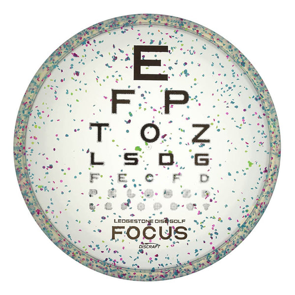 The Focus is a beadless putter with a neutral, point-and-shoot flight that shines inside the circle and on straight approaches. It offers a clean release with minimal fade, making it a dependable option for players who value consistency and touch. CryZtal Flx Confetti plastic provides a flexible, premium feel with added durability and colorful confetti flakes throughout. The stamp features an eye test design with LSDG cleverly centered in the chart, creating a sharp, playful visual that pops at a glance.