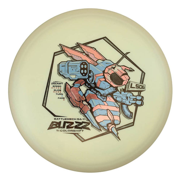 The Buzzz is a laser-straight midrange known for point-and-shoot accuracy and a clean, dependable release. It holds any line you put it on, making it a go-to for controlled drives and precision approaches. Titanium Colorshift plastic offers premium durability with a smooth, metallic sheen that shifts tones in the light. The stamp features a battle-ready mech geared up for combat, bringing heavy armor energy to this precision flyer.