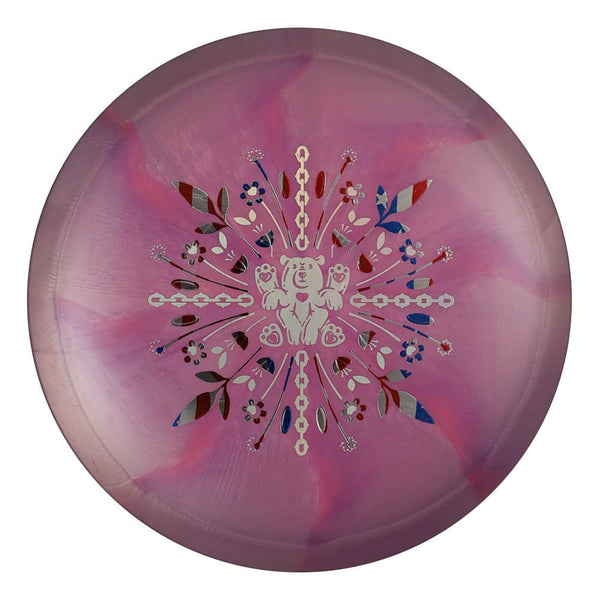 This narrow-rimmed fairway driver is controllable for all skill levels. Its long, straight flights with small high-speed turn and a gentle, but predictable, fade make this disc a favorite across generations. Though out-of-production at Discraft, the old-school Cyclone bears a strong resemblance to the modern-day Passion. The historic mold has been brought back in a limited run of 300 discs. It will be the first run to feature Brian Earhart’s brand-new logo depicting a front-facing bear with heart-shaped paw pads. This is a two-foil stamp with chains and multicolored flowers stemming from the center of the new Bearhart design. These Cyclones have a bit more stability than a standard Passion in this plastic.
