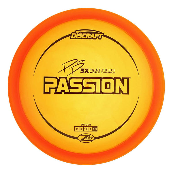 The Passion is a fairway driver with a straight flight with great glide. The Passion is a unique disc and feels like a Discraft Stalker mixed with a Cyclone. The Passion is great for wooded throws that call for less skip and more precision on the landing. The Passion is one of Paige's go to discs because of its extreme versatility and this run is in Z Lite plastic.