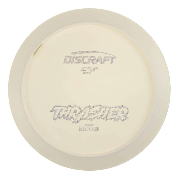 Meet the Thrasher, a disc that offers easy distance and is comfortable in most hands. It's a reliable distance driver that offers great consistency, especially in no wind conditions and is the preferred distance driver of Discraft pro Missy Gannon. The Thrasher has enhanced glide, making it a perfect disc for those long wooded holes. Overall, the Thrasher is a true distance driver that is a real bomber on backhand drives and slots in nicely in Discraft's distance driver lineup. These White ESP Thrashers have a blank top and a stamp on bottom, making these discs perfect for dyeing.